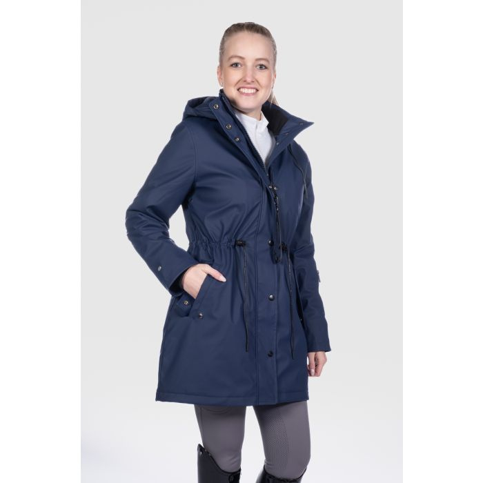 Rijjas -Dallas-Donkerblauwwaterbestendig lichte vulling Halve voering aan de binnenkant met nepbont en decoratief quiltwerk Binnenkraag van fleece Tweewegritssluiting met drukknoopsluiting opgestikte zakken met warme fleecevoering grote binnenzak Taille…