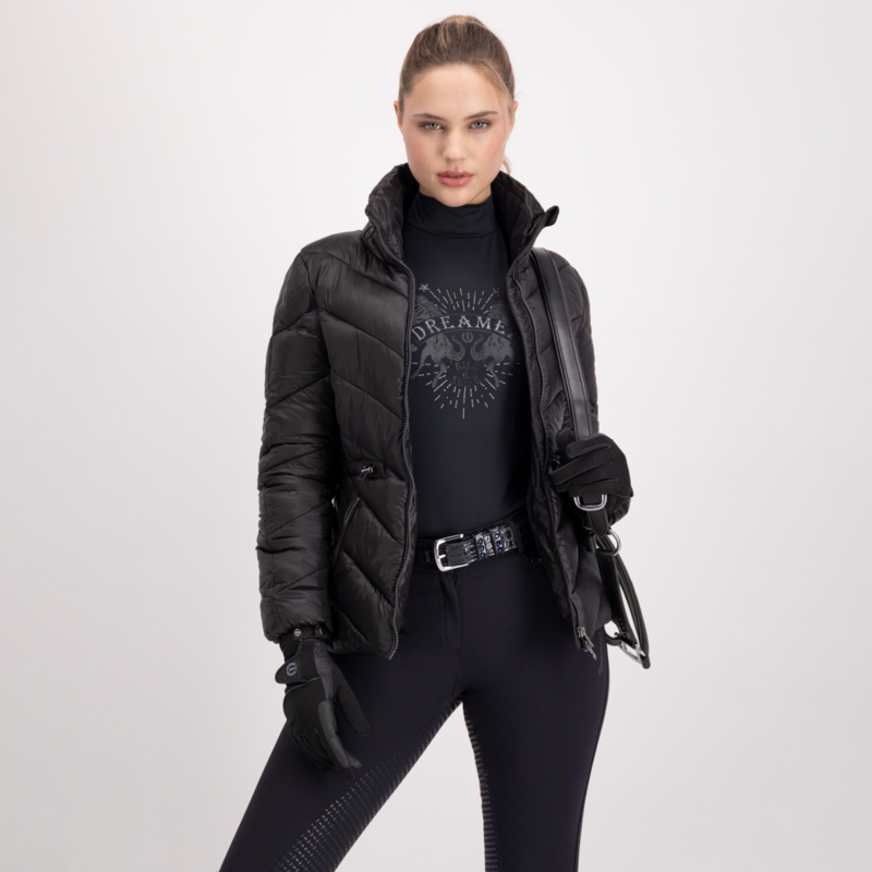 OverzichtBlijf warm en stijlvol deze winter met onze nieuwe gewatteerde jas! Gemaakt met nepdons voor een diervriendelijke optie, deze jas heeft een 2-weg rits sluiting aan de voorkant voor gemakkelijk dragen. Met 2 insteekzakken met ritssluiting en een zachte fleece voering bij de kraag, zul je de hele winter gezellig blijven. De taille kan worden aangetrokken met een koord voor een aansluitende look, en er is een binnenzak met klittenbandsluiting voor het opbergen van je essentiële spullen. Compleet met merkritsen, een kinbeschermer en een logo-badge op de borst, is deze jas de perfecte mix van mode en functie. Kies onze gewatteerde jas voor ultieme chic in koud weer!