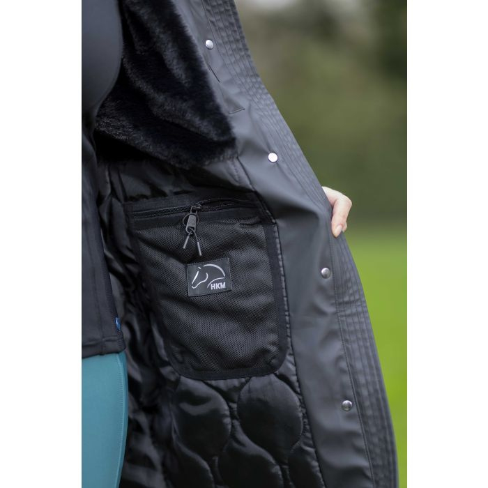 Overzichtwaterbestendig lichte vulling Halve voering aan de binnenkant met nepbont en decoratief quiltwerk Binnenkraag van fleece Tweewegritssluiting met drukknoopsluiting opgestikte zakken met warme fleecevoering grote binnenzak Taille individueel in maat verstelbaar Afneembare capuchon met drukknopen Gebreide manchetten op de mouwen Rijsplitten aan de achterkant met geplooide onderkant met reflecterende print verwijderbare sleutelhanger Buitenstof: 100% polyester Binnenvoering: 100% polyester Vulling: 100% polyester Binnenstebuiten wassen machinewasbaar op 30 graden niet geschikt voor de droger niet strijken Lengte 86cm