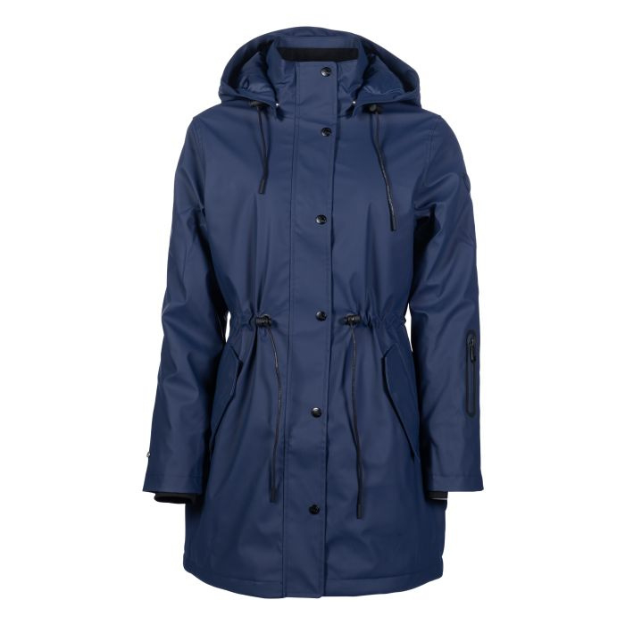 Overzichtwaterbestendig lichte vulling Halve voering aan de binnenkant met nepbont en decoratief quiltwerk Binnenkraag van fleece Tweewegritssluiting met drukknoopsluiting opgestikte zakken met warme fleecevoering grote binnenzak Taille individueel in maat verstelbaar Afneembare capuchon met drukknopen Gebreide manchetten op de mouwen Rijsplitten aan de achterkant met geplooide onderkant met reflecterende print verwijderbare sleutelhanger Buitenstof: 100% polyester Binnenvoering: 100% polyester Vulling: 100% polyester Binnenstebuiten wassen machinewasbaar op 30 graden niet geschikt voor de droger niet strijken Lengte 86cm